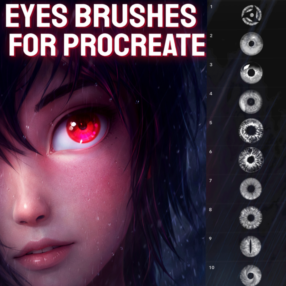 There are 10 brushes in this set that will help you draw beautiful eyes.