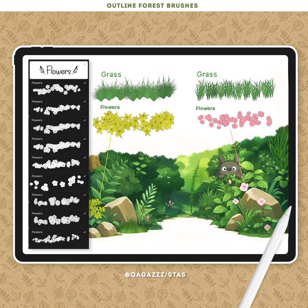 Ideal for all skill levels, from beginners to professionals. Whether you're designing in a Ghibli-inspired style or crafting botanical illustrations, this Procreate brush pack is your perfect nature companion.