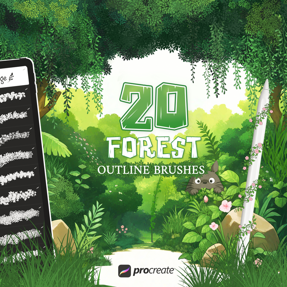 This mini collection includes 20 free Procreate brushes designed for drawing and painting leaves, trees, plants, vines, grass, and more — all in one stroke. Perfect for forest and nature-themed illustrations, these brushes automatically outline and fill your drawings with the color you choose. It’s quick, clean, and ideal for artists of all skill levels.