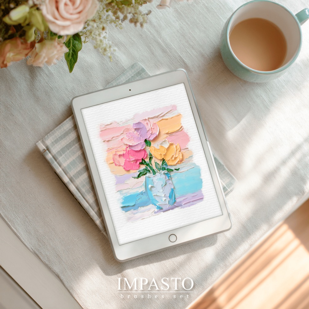 These Procreate realistic oil and impasto brushes made for smooth, quick painting on digital canvas. Create expressive oil, impasto, and gouache illustrations with authentic brush texture and depth. This all-in-one set includes realistic paint strokes, canvas-ready textures, and Procreate stamp brushes — perfect for artists who love rich, buttery oil effects and tactile brushwork in Procreate.