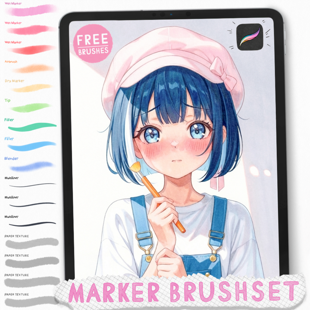 Free Copic inspired Markers Brushset for Procreate (Multiliner, Airbrush, Blender, Paper texture, Markers)