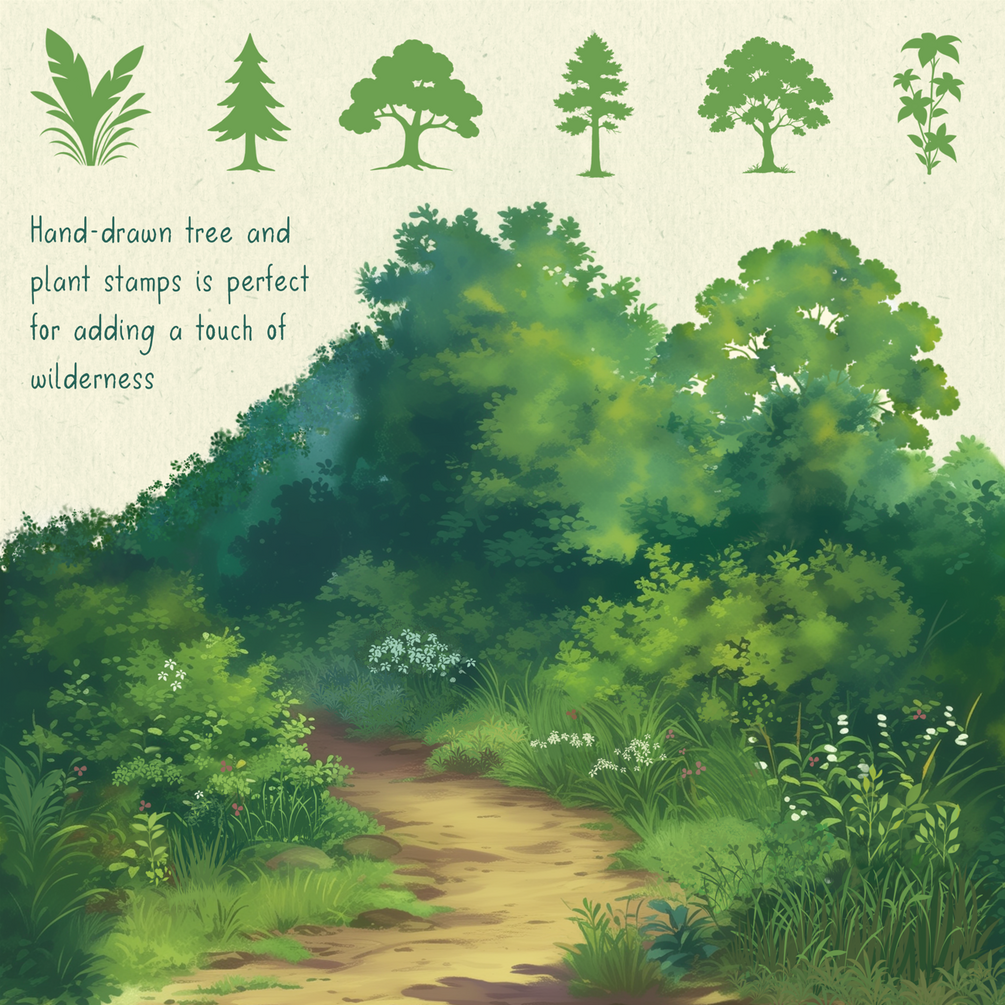 5 tree brushes & stamps