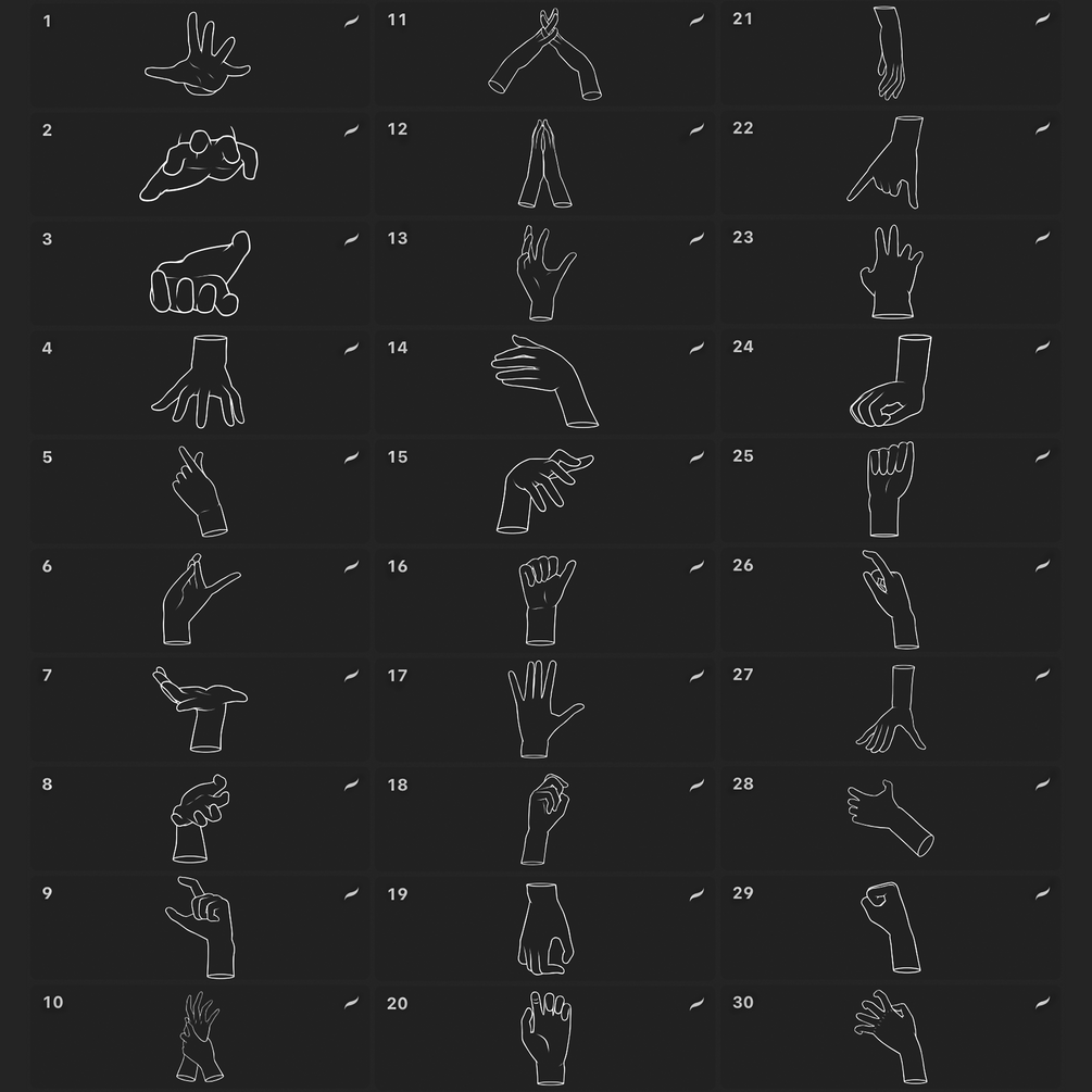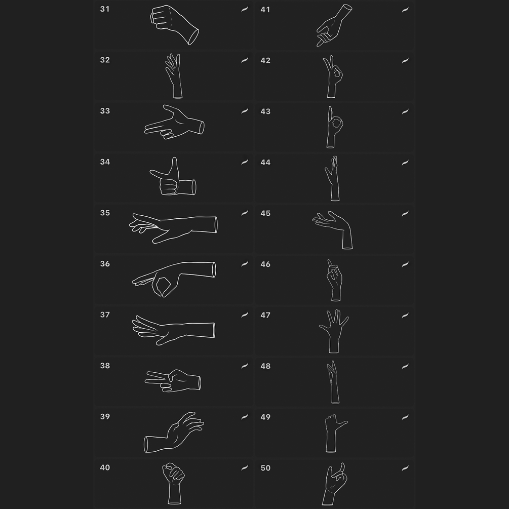 This set contains 50 brushes to help you draw different hand poses for your character✋