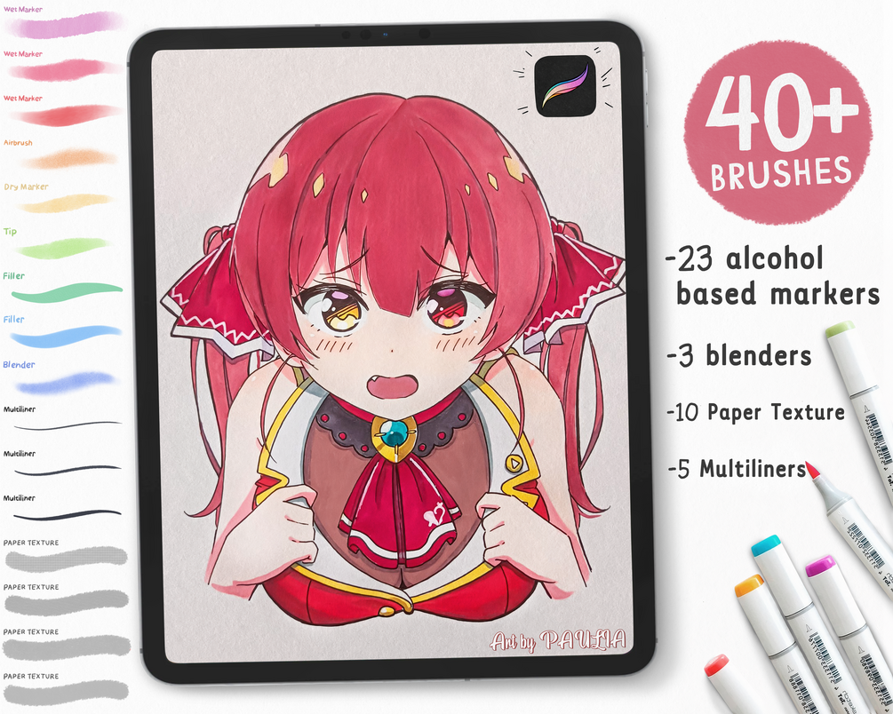 Copic inspired Markers Brushset for Procreate (Multiliner, Airbrush, Blender, Paper texture, Markers)