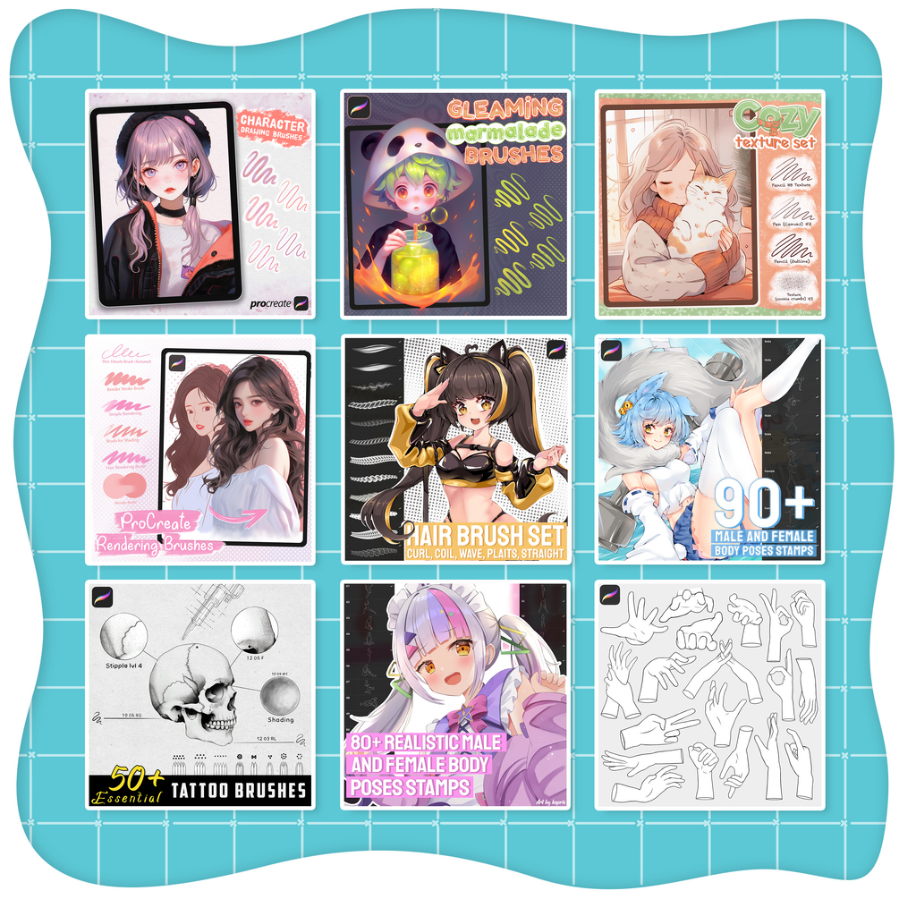 Hey there! I’ve bundled all my brush sets into one massive pack with over 1,000 brushes for Procreate. It includes every set from my store, and future sets will be added for free. With this pack, you'll save over $100. Upgrade your creative tools today!