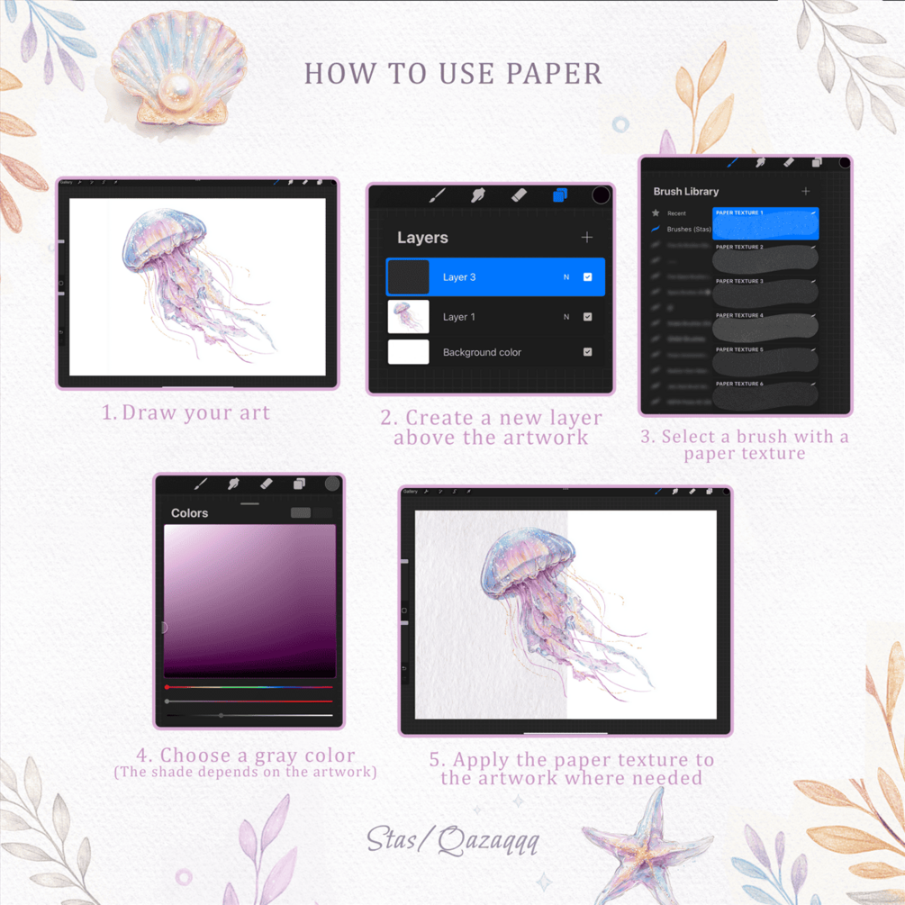 • 65 Procreate brushes (watercolor, metallic, glitter, glow, foil, gold effects)