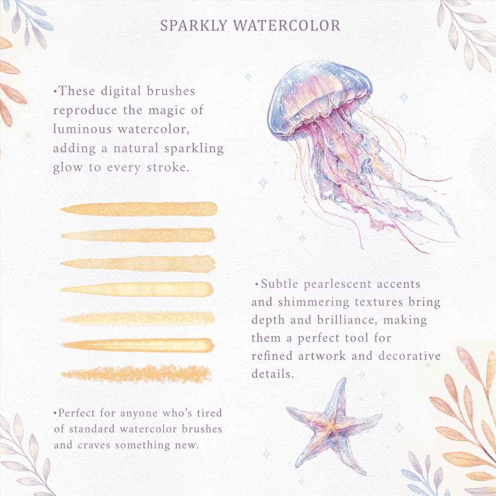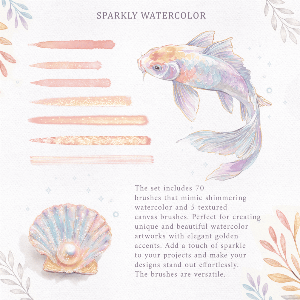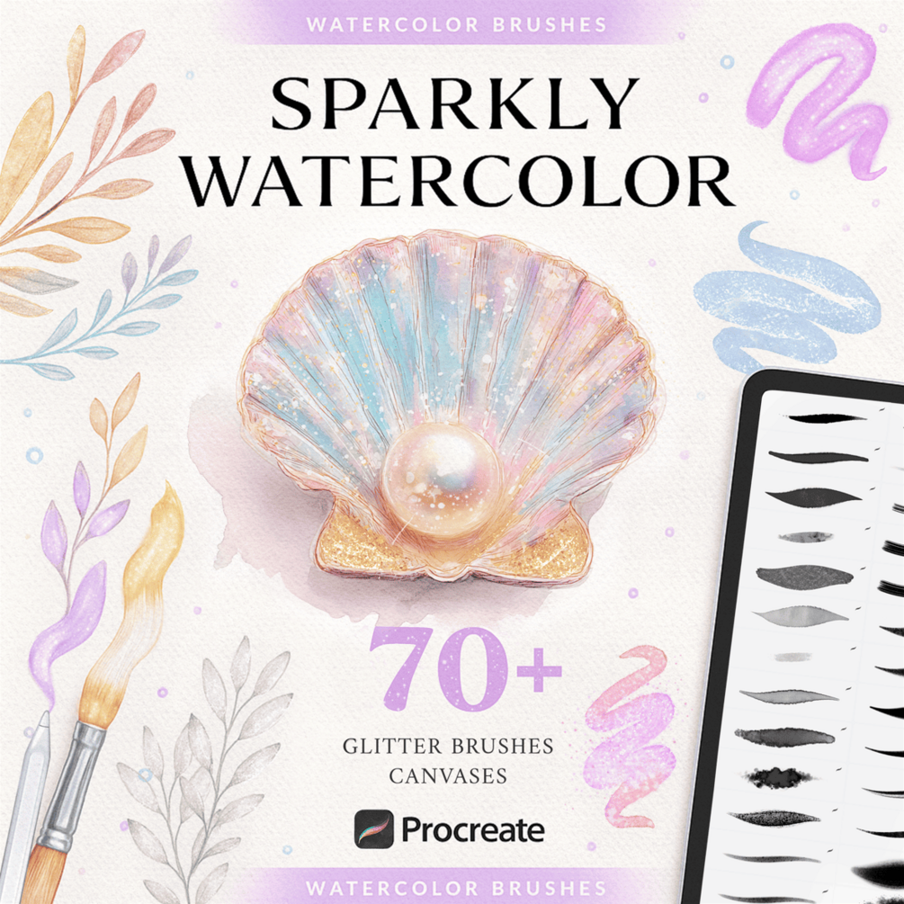 70 Sparkly Watercolor Brushes for Procreate — Shimmer, Glitter, Pearl, Metallic, Paper & Canvas Textures